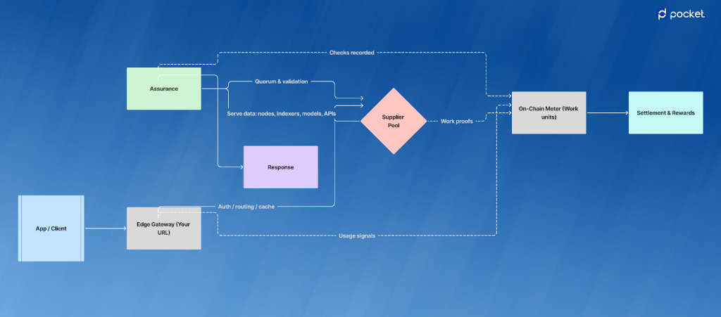 If you want the shortest path to “DePIN for data” without rewriting your app, run one gateway on Pocket Network, attach two services, and compare bills. If it helps, expand. If you operate infra, consider becoming a supplier and let demand route to you. Either way, you’re no longer betting on one provider’s roadmap; you’re participating in a market you can measure.
